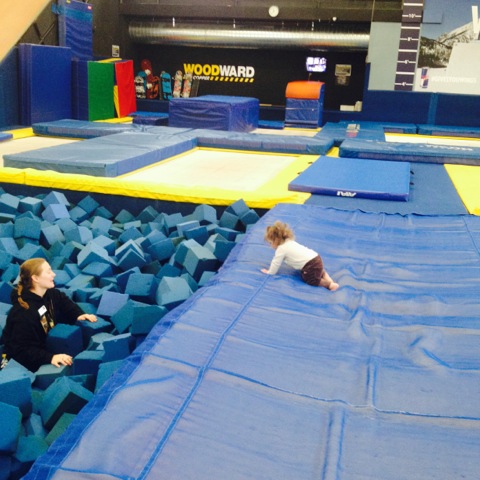 Copper is the best place to prepare the littlest ones for actual skiing with its impressive action sports training ground called Woodward Copper Barn, a 19,400- square- foot year-round snowboard and ski training camp with programs for skiing, skateboarding, BMX and slope-style mountain biking. And, yes, the Barn is a great place to prepare a 14-month-old for eventual skiing, with its enormous beginner foam pit and a trainer to show the little one how to jump into it, crawl through tunnels, and hula hoop. Our little one didn’t even realize she was having a full hour of supervised exercise in the barn; she thought it was just plain fun.
